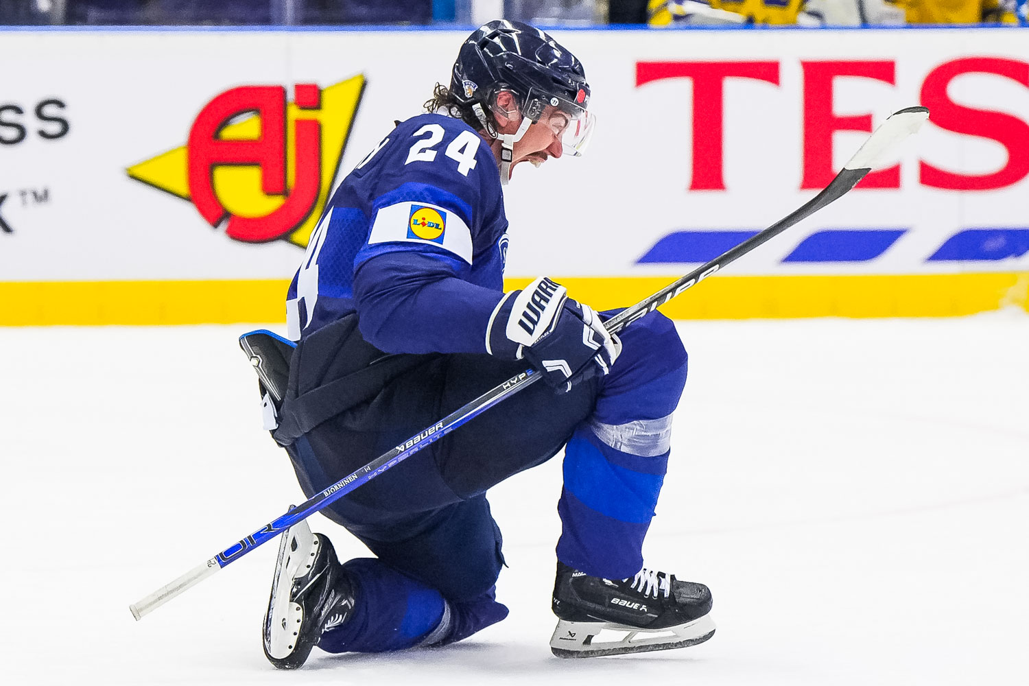 Hannes Björninen tasoitti ottelun kolmannen erän viimeisellä minuutilla. Kuva: Matt Zambonin/IIHF