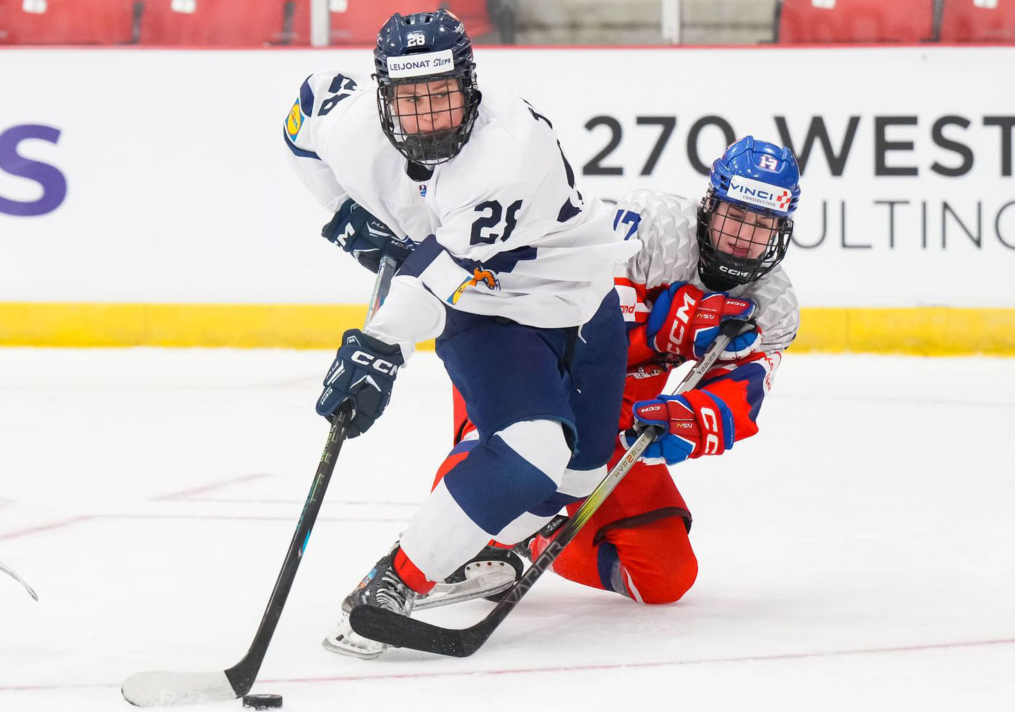 Kovaa taistelua MM-avausottelussa. Kuva: IIHF Hockey