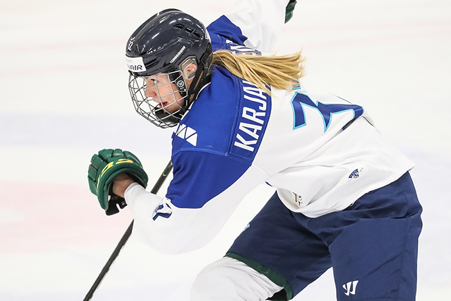 Karjalaisen uran ensimmäiset aikuisten MM-kisat siirtyivät hamaan tulevaisuuteen, mutta arvokisoista hänellä on silti rutkasti kokemusta – onhan hän edustanut Suomea kolmesti alle 18-vuotiaiden tyttöjen MM-kisoissa.