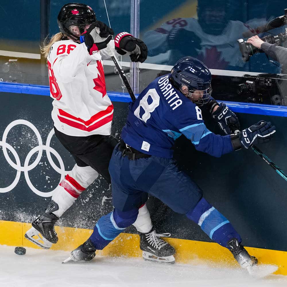 Kanada voitti Suomen maalein 5–0 torstaina Milanossa pelatussa naisten olympiaturnauksen ottelussa. Kyseessä oli turnauksen alkulohkovaiheen viimeinen ottelu. Kanada sijoittui alkulohko A:ssa toiseksi, Suomi neljänneksi.