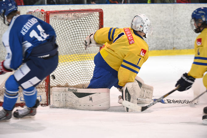 Vain minuutti Ruotsin maalista Linus Nyman avasi Leijonien maalihanat. Joni Ikosen päätysyötöstä Linus latasi kiekon ensimmäisen kerran Ruotsin maaliin.