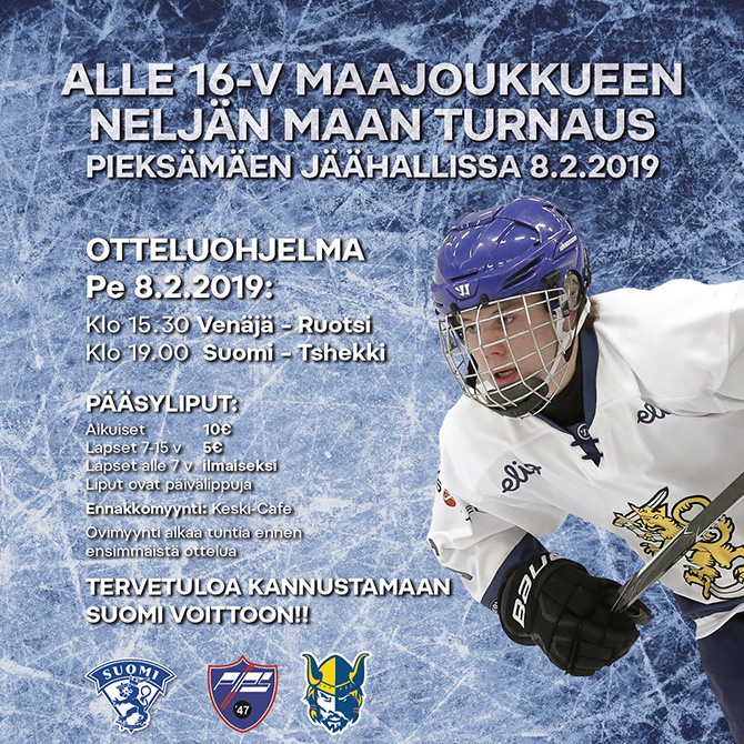 Suomen alle 16-vuotiaiden poikien maajoukkue isännöi viikonloppuna neljän maan turnausta, johon osallistuvat Ruotsi, Venäjä ja Tshekki. Ottelut pelataan Pieksämäellä ja Mikkelissä.