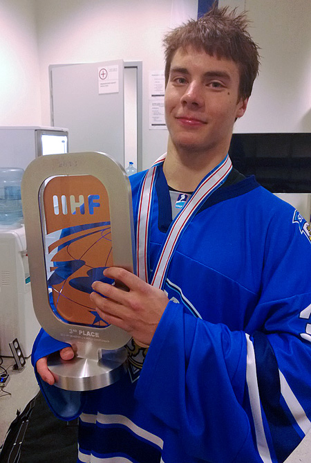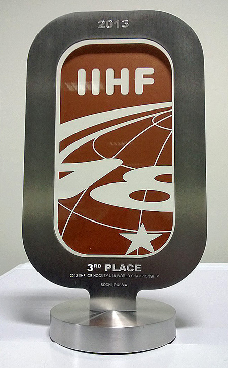Leijonat-toimituksen sähköpostiin saapui tuoreita kuvia Sotshista. Kuvissa on pääosassa alle 18-vuotiaiden MM-turnauksen kolmas palkinto. Kansainvälinen Jääkiekkoliitto on päivittänyt kolmanneksi sijoittuneelle joukkueelle jaetun pronssilautasen pokaalin muotoon.