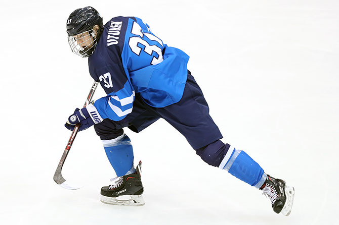 Toni Utunen vauhdissa lauantain välieräottelussa.