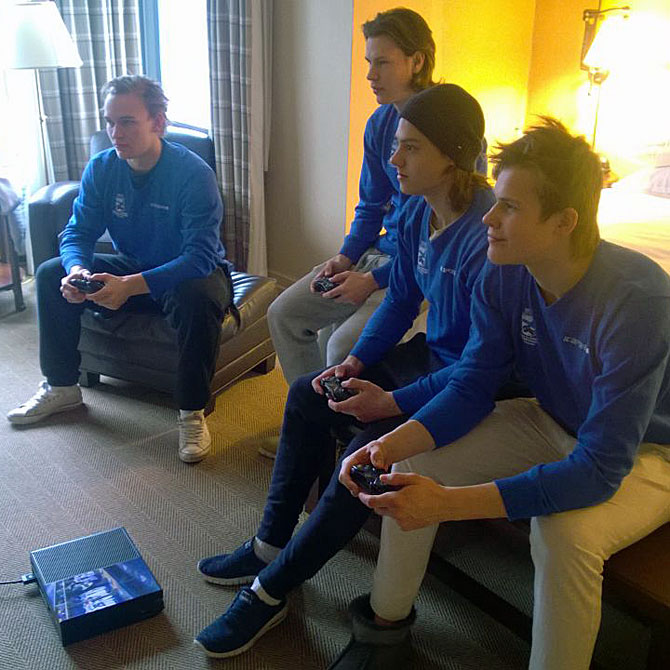 Kuvissa pelin kimpussa ovat joukkueen nuoremman kaartin pelaajat, jotka ovat ikänsä puolesta kisakelpoisia myös vuoden kuluttua pelattavassa kotiturnauksessa. Siitä ei ole tietoa, mitä peliä he kuvissa pelaavat.