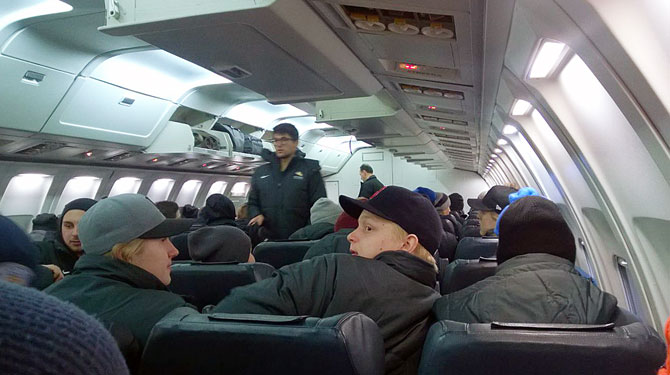 Suomen alle 20-vuotiaiden MM-joukkueella oli torstaina aikainen herätys. Jo kuuden jälkeen noustiin hotellilla bussiin ja matkustettiin lentokentälle.