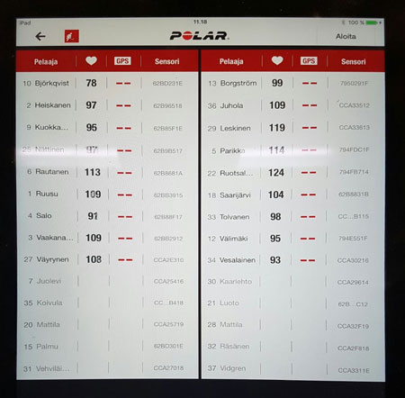 Joukkueen sykkeet seurannassa.