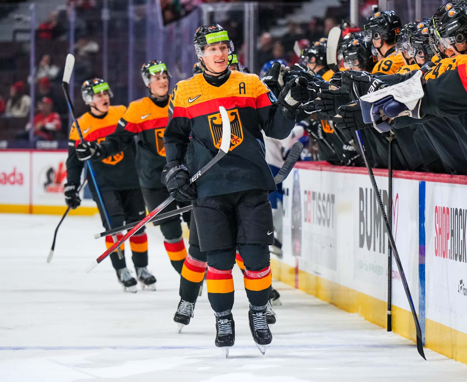 Saksan Julius Sumpf teki karsintaottelussa joukkueensa 4–3-voittomaalin. Kuva: André Ringuette/IIHF