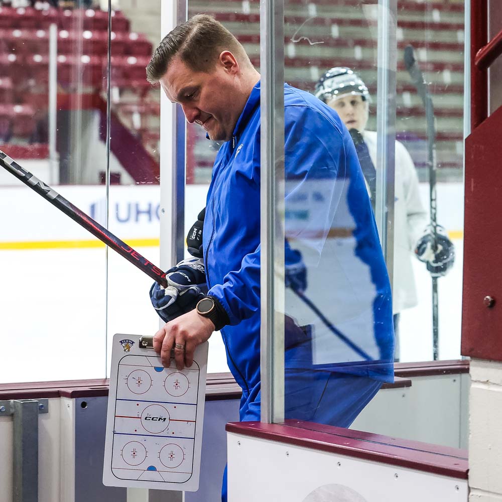 Päävalmentaja Lauri Mikkola poistumassa harjoituksista.
