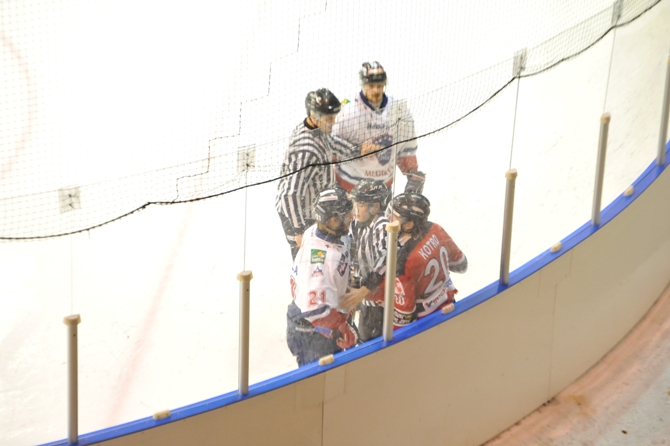 Hermeksen pelaajat yrittivät saada kuriin Jokipoikien Jari Lievosen.