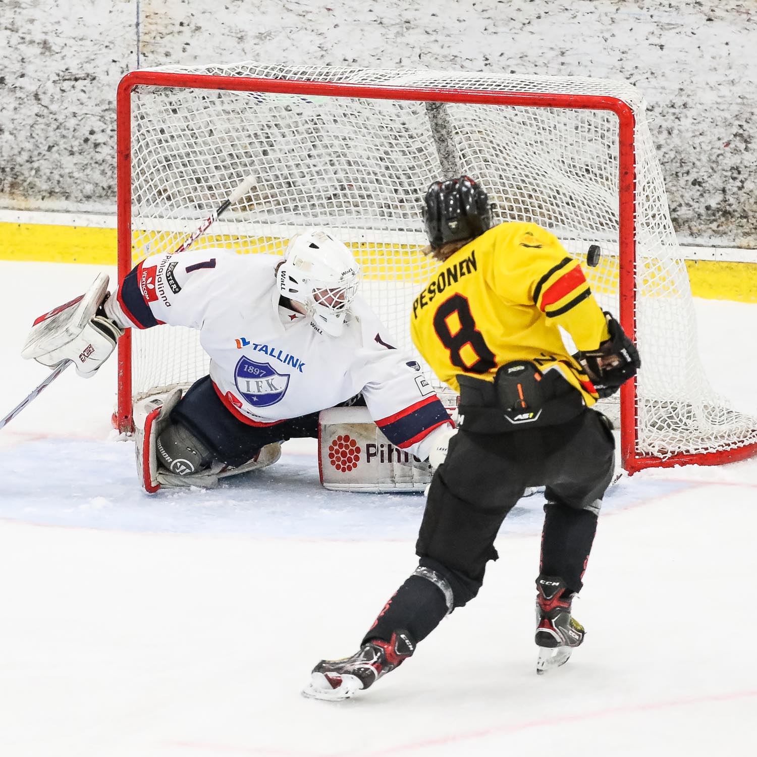 KalPan Iisai Pesonen teki kaksi maalia sunnuntain ottelussa HIFK:ta vastaan.