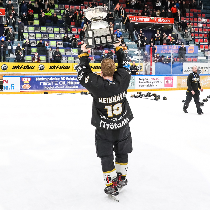 Finaalisarjan ratkaisseessa kolmannessa loppuottelussa Heikkala oli kaukalon tehokkain pelaaja. Hän teki kaksi maalia ja syötti yhden, kun Kärpät varmisti Suomen mestaruuden 6–3-voitollaan Bluesista.
