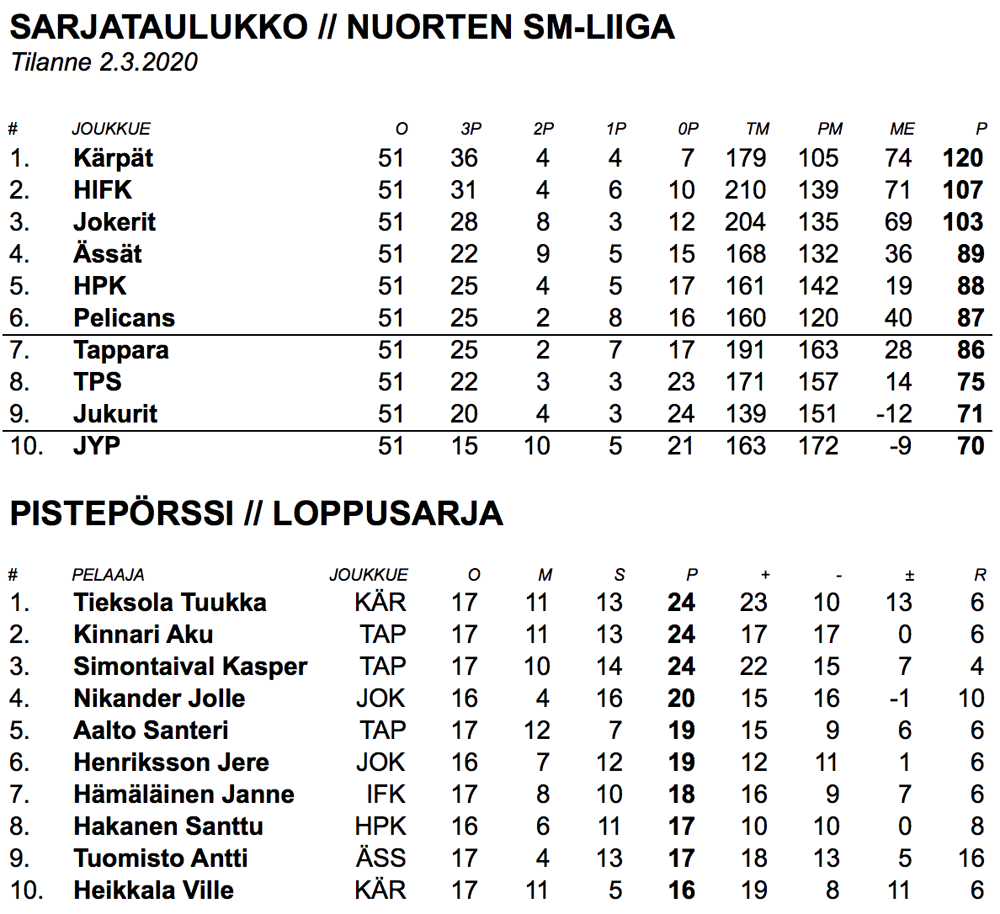 Nuorten SM-liigan runkosarja huipentuu tiistaina ja keskiviikkona päätöskierroksen otteluilla. Sarjan kolme kärkisijaa ovat jo varmistuneet, mutta sekä muista puolivälieräpaikoista ja viimeisestä villistä kortista käydään vielä huipputasainen kamppailu.