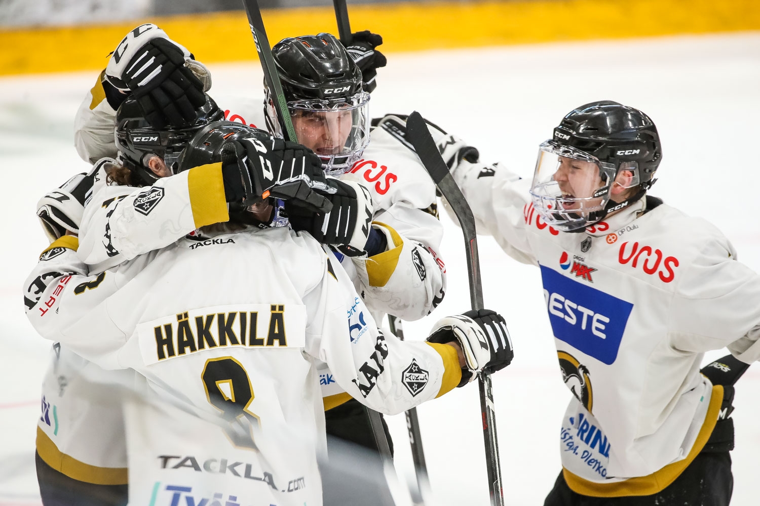 Lukko tuli tasoihin erän lopulla. Onneakin oli matkassa, kun Jeremi Tammela siirsi kiekon kohti Kärppien maalia ja peliväline ponnahti verkkoon.