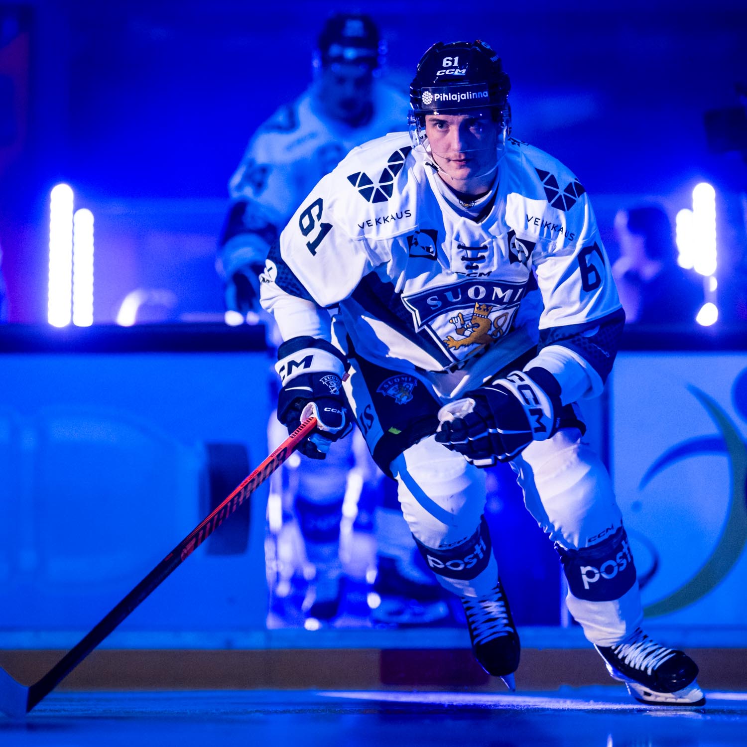 Petteri Puhakka luisteli kaukaloon Euro Hockey Tourin Karjala-turnauksen ottelussa Suomi–Tshekki 9.11.2024.
